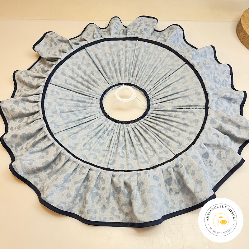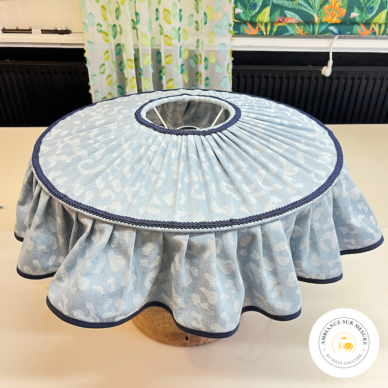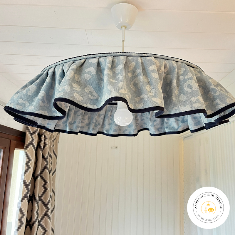 Laissez-vous séduire par cette suspension unique au charme intemporel. Son tissu en jean bleu au motif léopard délicat et son galon contrasté lui donnent une allure chic et pleine de caractère.